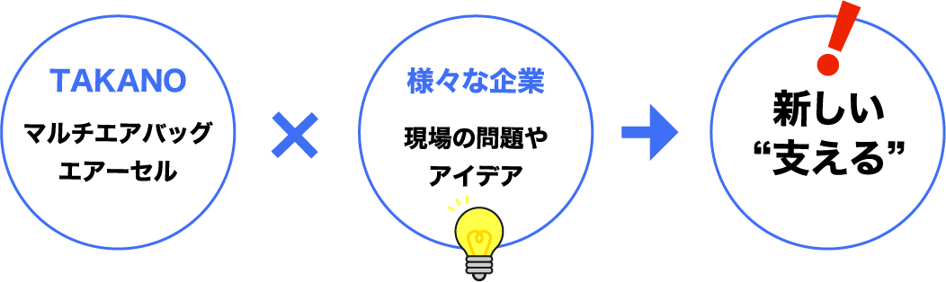 TAKANOについて 空気と特殊フィルムとウレタンを使った技術で、 体圧分散、姿勢保持を叶えるエアーセルを開発。 医療従事者や患者の身体の負担を軽減することに役立てています。 その技術を応用してマルチエアーバッグを開発。 様々な企業と共に、製品生産や医療の現場の問題解決に活かしています。 私たちは、社会に役立つ価値ある製品を生み出し、 人々が安心して暮らせる、明るい未来を創造していきます。 この技術を導入しませんか?